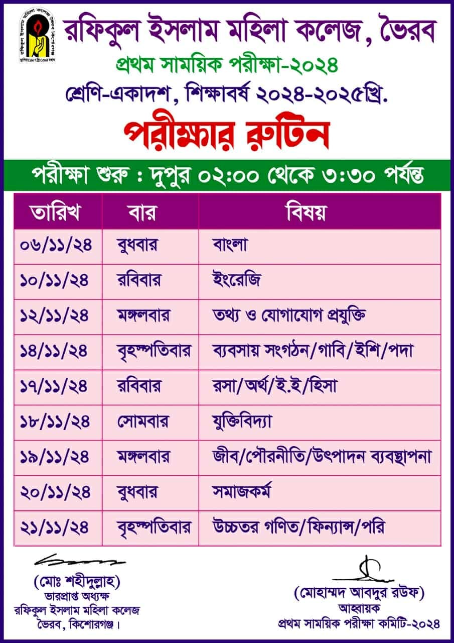 | 6 | 2024-11-02 | ২০২৪-২৫ শিক্ষাবর্ষের পরীক্ষার্থীদের অর্ধ-বার্ষিক পরীক্ষার রুটিন | View Download |